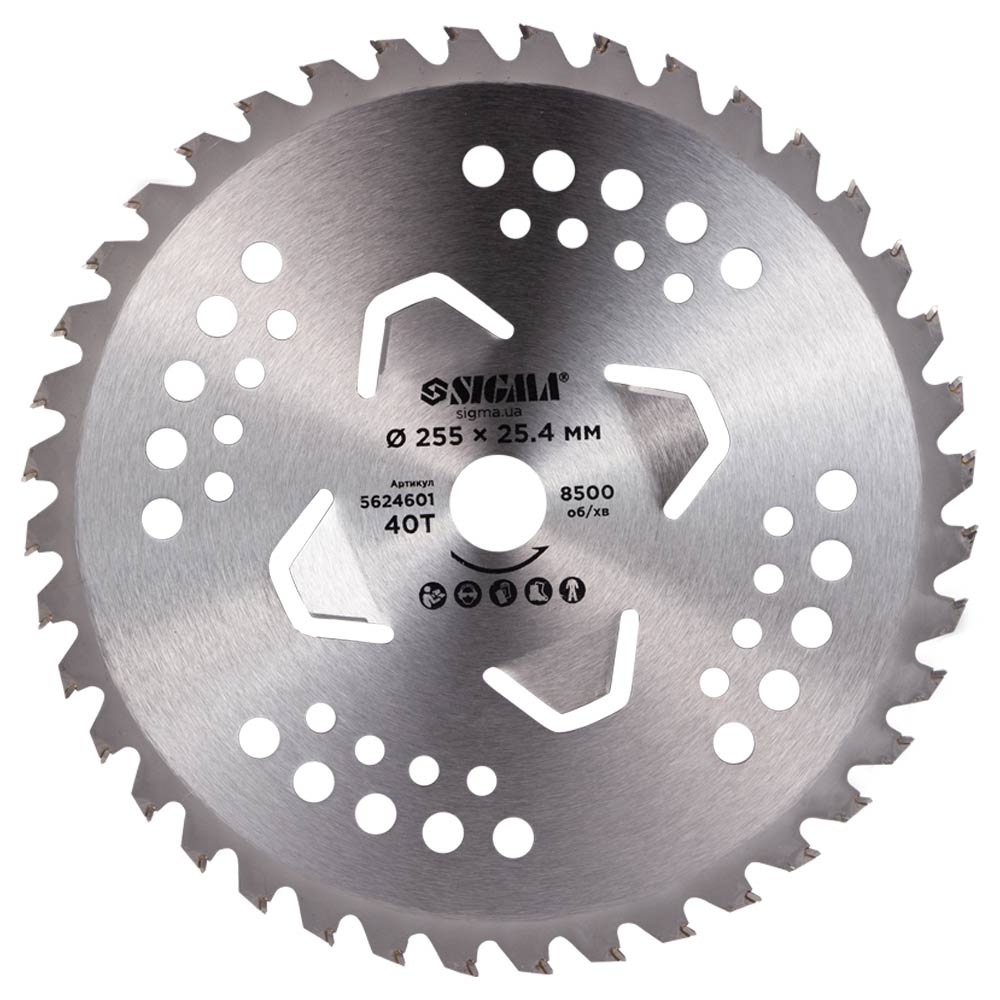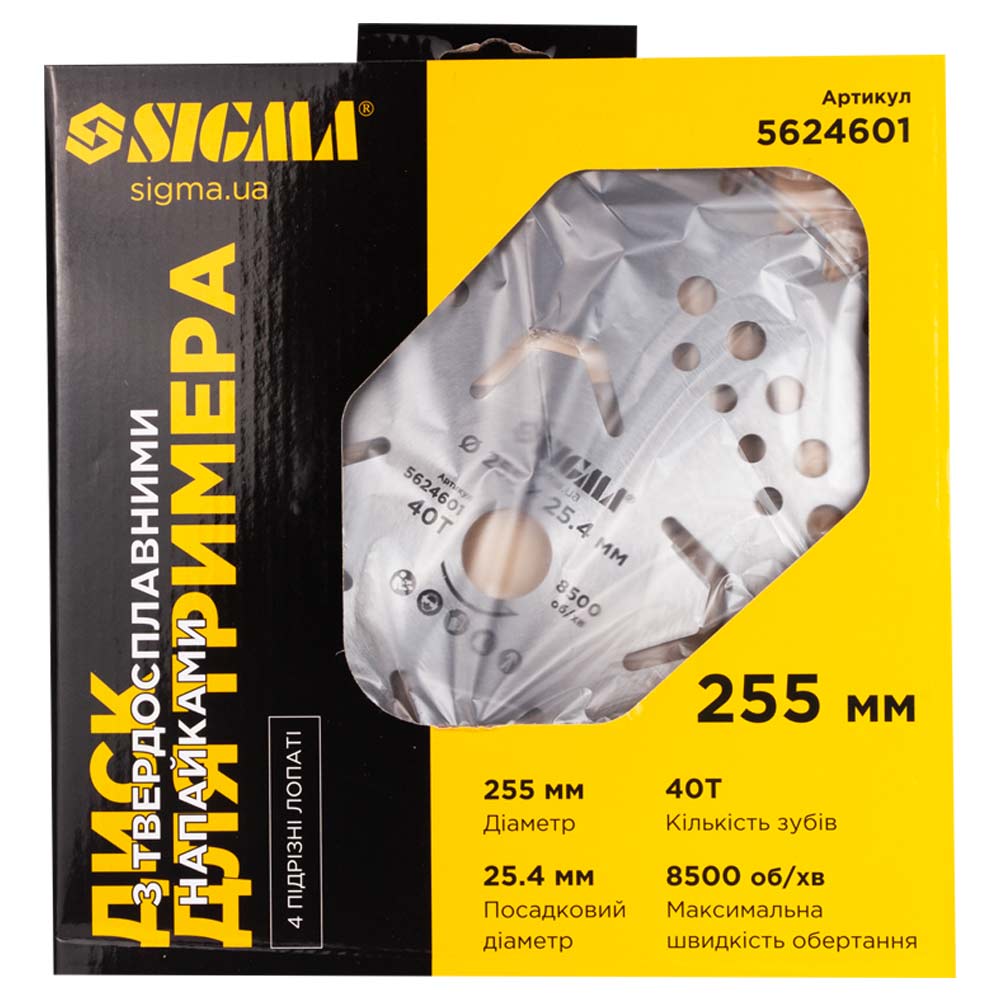 Диск Sigma для тримера з твердосплавними напайками Ø255 x 25.4 мм 40Т 4 підрізні лопаті