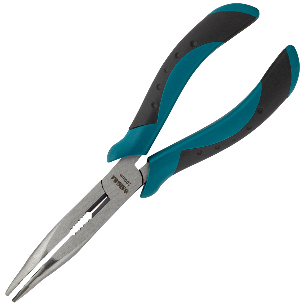 Довгогубці Sigma Mega вигнуті 200 мм - це професійний інструмент з максимальним вильотом, призначений для роботи в глибоких та важкодоступних місцях. Ключовою особливістю цієї моделі є поєднання великої довжини та вигнутої форми з високою міцністю сталі C55 (твердість 58-63 HRC), що забезпечує чудову функціональність та надійність. Посилена конструкція та зручні руків'я дозволяють прикладати значне зусилля без ризику пошкодження інструменту, а функція авторозтиску робить роботу комфортною навіть при інтенсивному використанні.