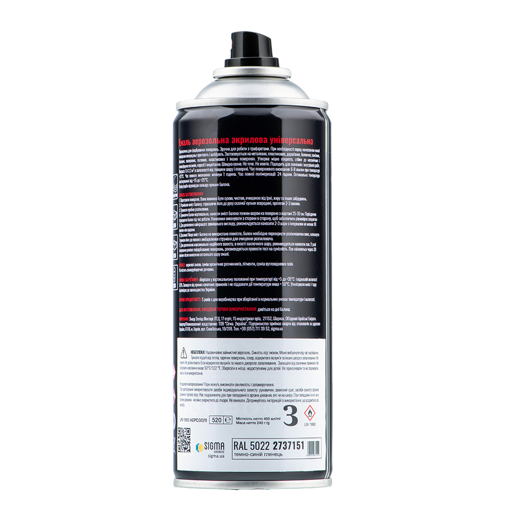 Емаль аерозольна Sigma акрилова 400 мл RAL 5022 темно-синій глянець