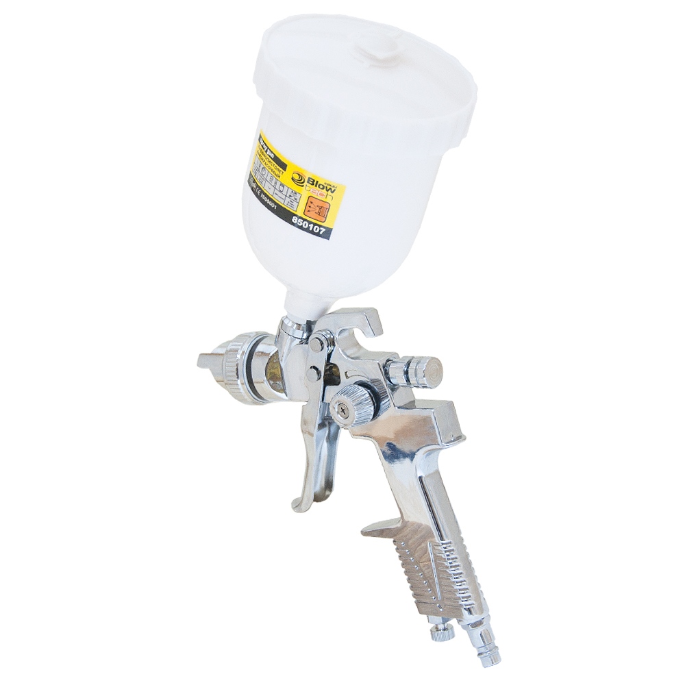 - Повний контроль: агрегат має незалежні регулювання подачі повітря, об'єму фарби та форми розпилення, що дозволяє точно налаштувати процес під конкретну задачу.