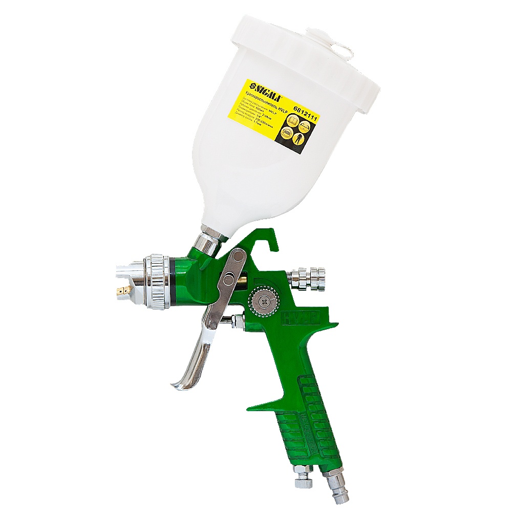 Фарборозпилювач Sigma HVLP Ø1.7 мм 140-280л/хв 3бар в/б (пласт) зелений — професійний інструмент, розроблений для швидкого та рівномірного нанесення лакофарбових сумішей на металеві, дерев'яні та пластикові поверхні.
