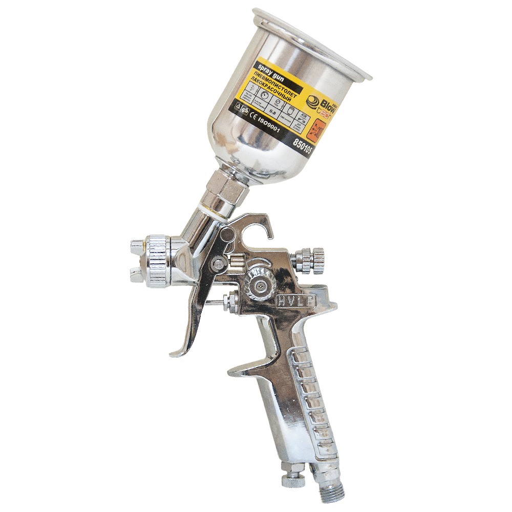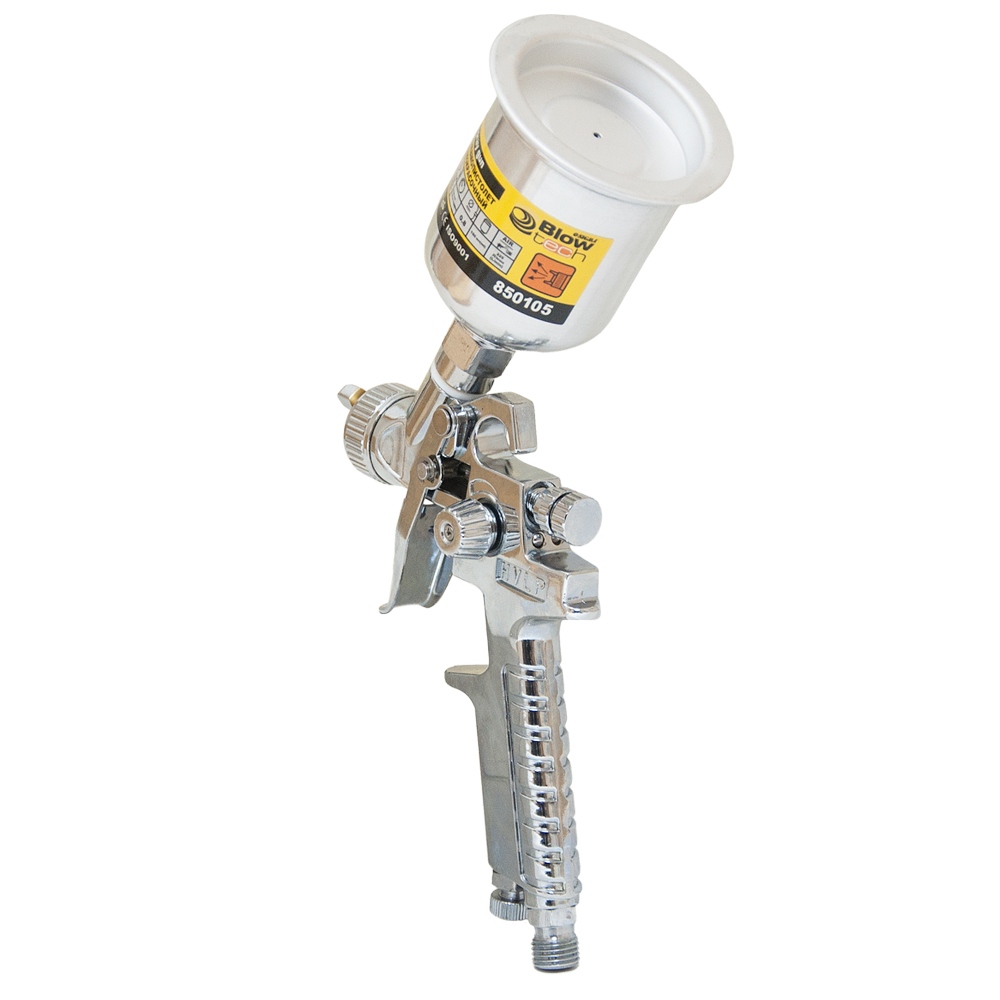 Фарборозпилювач Sigma HVLP-mini Ø0.8 мм 30-115л/хв 2.1бар в/б 100 мл (мет) хром — професійний пневматичний інструмент компактного класу, розроблений для високоточного нанесення лакофарбових матеріалів на невеликі поверхні та деталі складної форми.