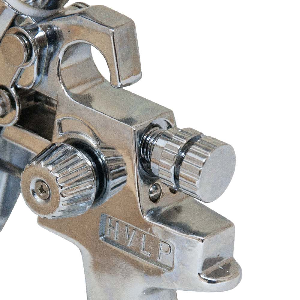- Високий коефіцієнт переносу: система High Volume Low Pressure (великий об'єм, низький тиск) забезпечує перенесення до 75% матеріалу на робочу поверхню, що суттєво знижує втрати на туманоутворення.