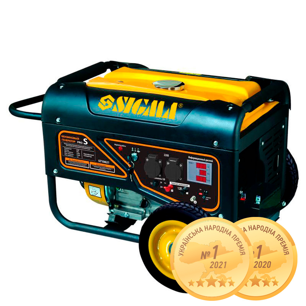 Генератор бензиновий Sigma Pro-S 5.0/5.5кВт 4-х тактний електрозапуск — це вдосконалена міні-електростанція з електростартером та оновленим дизайном, призначена для резервного живлення будинку, офісу або будівельного майданчика. Агрегат оснащений багатофункціональним цифровим дисплеєм (відображає напругу, частоту та мотогодини), мідною обмоткою альтернатора та системою AVR. Особливістю даної моделі є наявність захисних щитів на паливному баку та інтегрований транспортувальний комплект (колеса і ручки), що робить експлуатацію максимально зручною та безпечною. Надійний двигун має захист від низького рівня мастила (OIL ALERT).