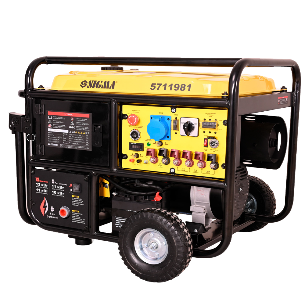 Генератор газ/бензин Sigma 220-380В 11/12кВт двоциліндровий 4-х тактний з виводом під АВР