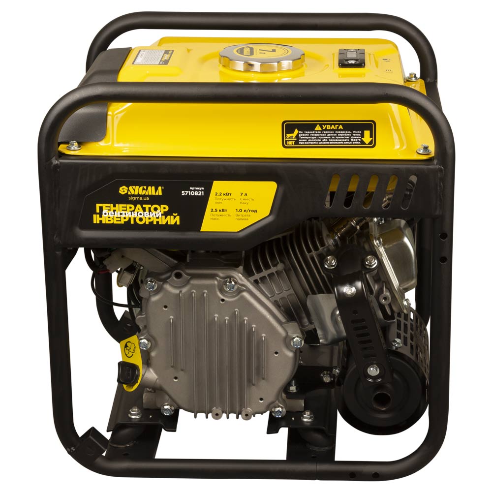Генератор інверторний бензиновий Sigma 220В 2.2/2.5кВт 7л 4-х тактний ручний запуск — це компактна та мобільна міні-електростанція, яка ідеально підходить для резервного живлення невеликого будинку, офісу або виїзду на природу. Завдяки інверторній технології та мідній обмотці, пристрій видає струм з чистою синусоїдою, що дозволяє безпечно підключати чутливу електроніку: ноутбуки, телевізори, газові котли та циркуляційні насоси. Агрегат оснащений системою захисту від низького рівня мастила (OIL ALERT), економним режимом роботи та відрізняється невеликою вагою для своєї потужності.