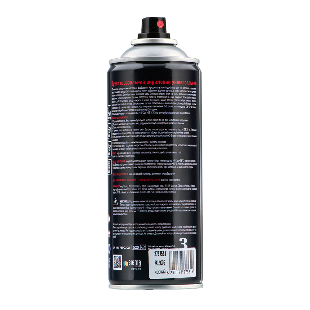 Грунт аерозольний Sigma акриловий 400 мл RAL 9005 чорний