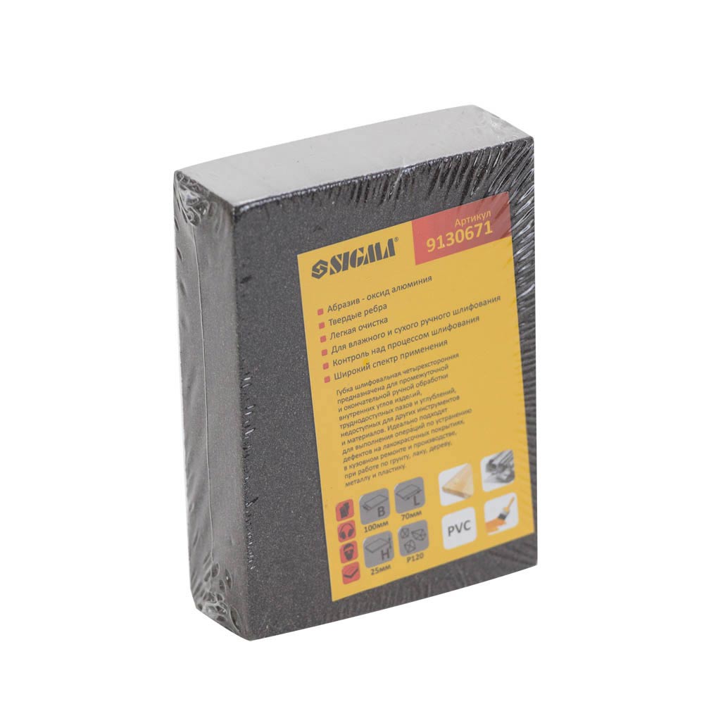 Губка шліфувальна Sigma чотиристороння 100 х 70 х 25 мм P120