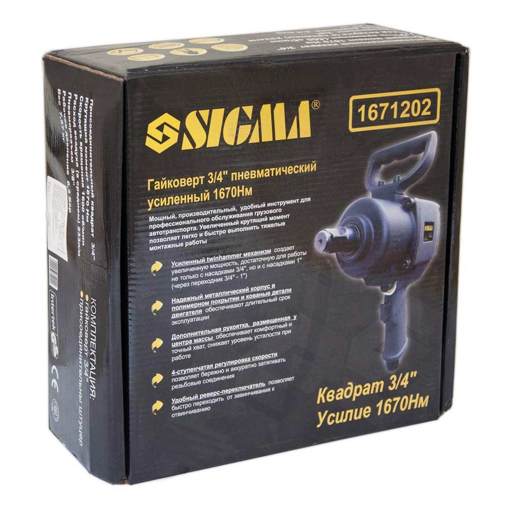 Гайковерт Sigma 3/4" пневматичний посилений 1670Нм — потужний професійний інструмент, розроблений для монтажу та демонтажу високонавантажених різьбових з'єднань на вантажному шиномонтажі, виробничих лініях та будівництві.