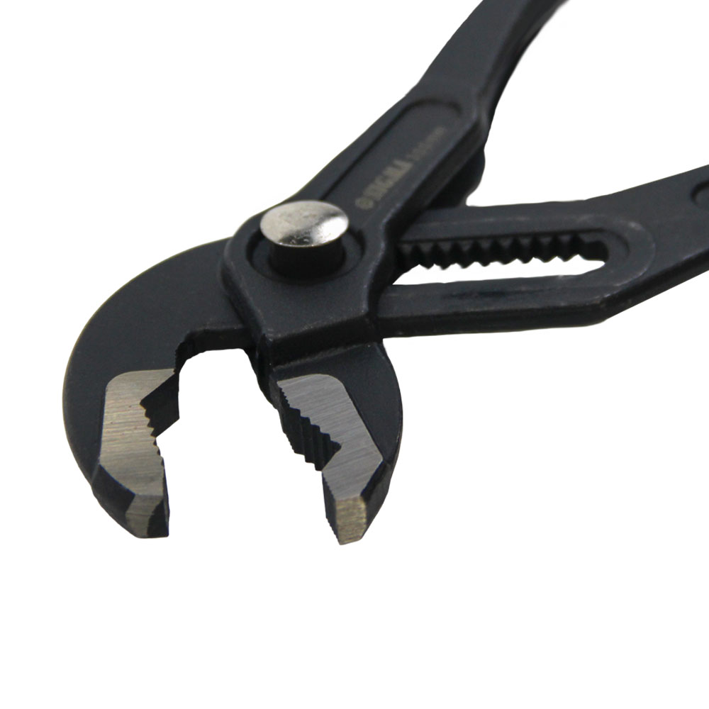 Кліщі переставні швидкозатискні Sigma для труб 300 мм - це професійне рішення для інтенсивної роботи з фітингами, нарізними з'єднаннями та сантехнічними елементами. Головною перевагою моделі є інноваційний кнопковий механізм, який дозволяє миттєво змінювати розмір розведення губок безпосередньо на робочій поверхні. Висока точність насічок на зубчастій частині гарантує надійну фіксацію круглих та гладких деталей, а матове покриття надійно захищає інструмент від корозії в умовах підвищеної вологості.
