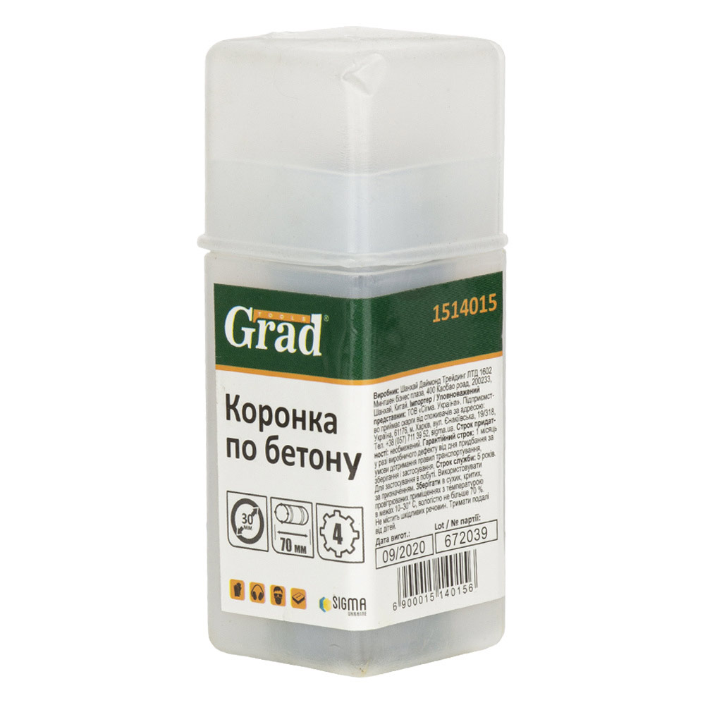 Коронка Grad по бетону Ø30 х 70 мм 4 зубці (тубус) - це інструмент, призначений для ударного свердління отворів у бетоні, цегляній кладці, твердому вапняку та натуральному камені. Дане оснащення розраховане на спільне використання з дрилями та перфораторами, потужність яких становить не менше 850 Вт.