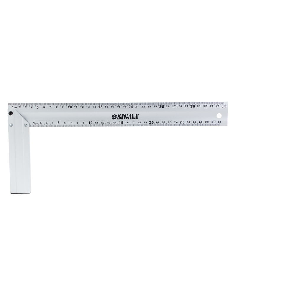 Косинець Sigma алюмінієвий 350 мм - це професійний вимірювальний та розмічальний інструмент збільшеного розміру, створений для точного розмічання та перевірки прямих кутів (90°) і кутів 45° під час складальних, столярних та будівельних робіт. Ключовою особливістю цієї моделі є спеціальне анодоване покриття, яке забезпечує чудовий захист від окислення та зносу. Міцне полотно з алюмінію товщиною 3 мм гарантує високу жорсткість та стійкість до викривлення, а чітка гравійована метрична шкала забезпечує точність та довговічність розмітки.
