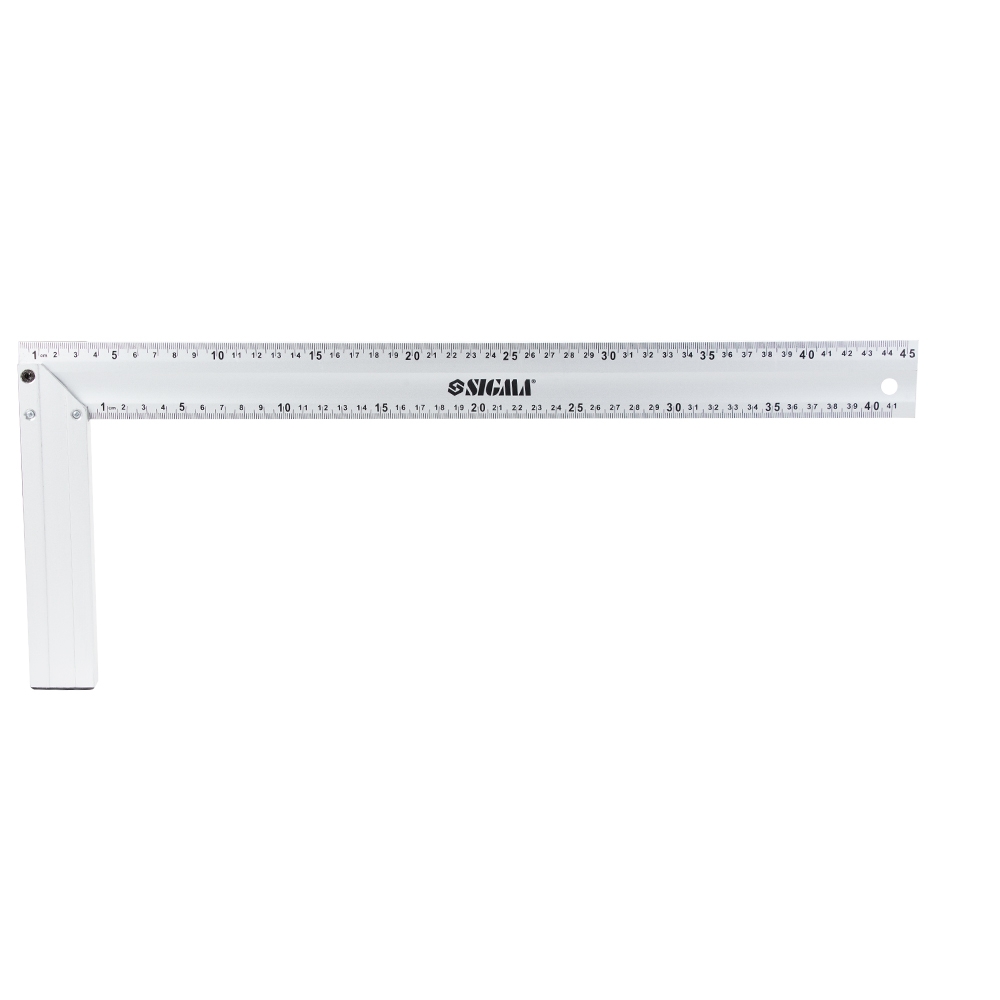 Косинець Sigma алюмінієвий 400 мм - це професійний вимірювальний та розмічальний інструмент великого розміру, створений для точного розмічання та перевірки прямих кутів (90°) і кутів 45° під час складальних, столярних та будівельних робіт. Ключовою особливістю цієї моделі є спеціальне анодоване покриття, яке забезпечує чудовий захист від окислення та зносу. Міцне полотно з алюмінію товщиною 3 мм гарантує високу жорсткість та стійкість до викривлення, а чітка гравійована метрична шкала забезпечує точність та довговічність розмітки.