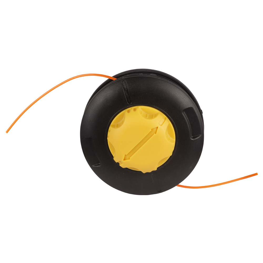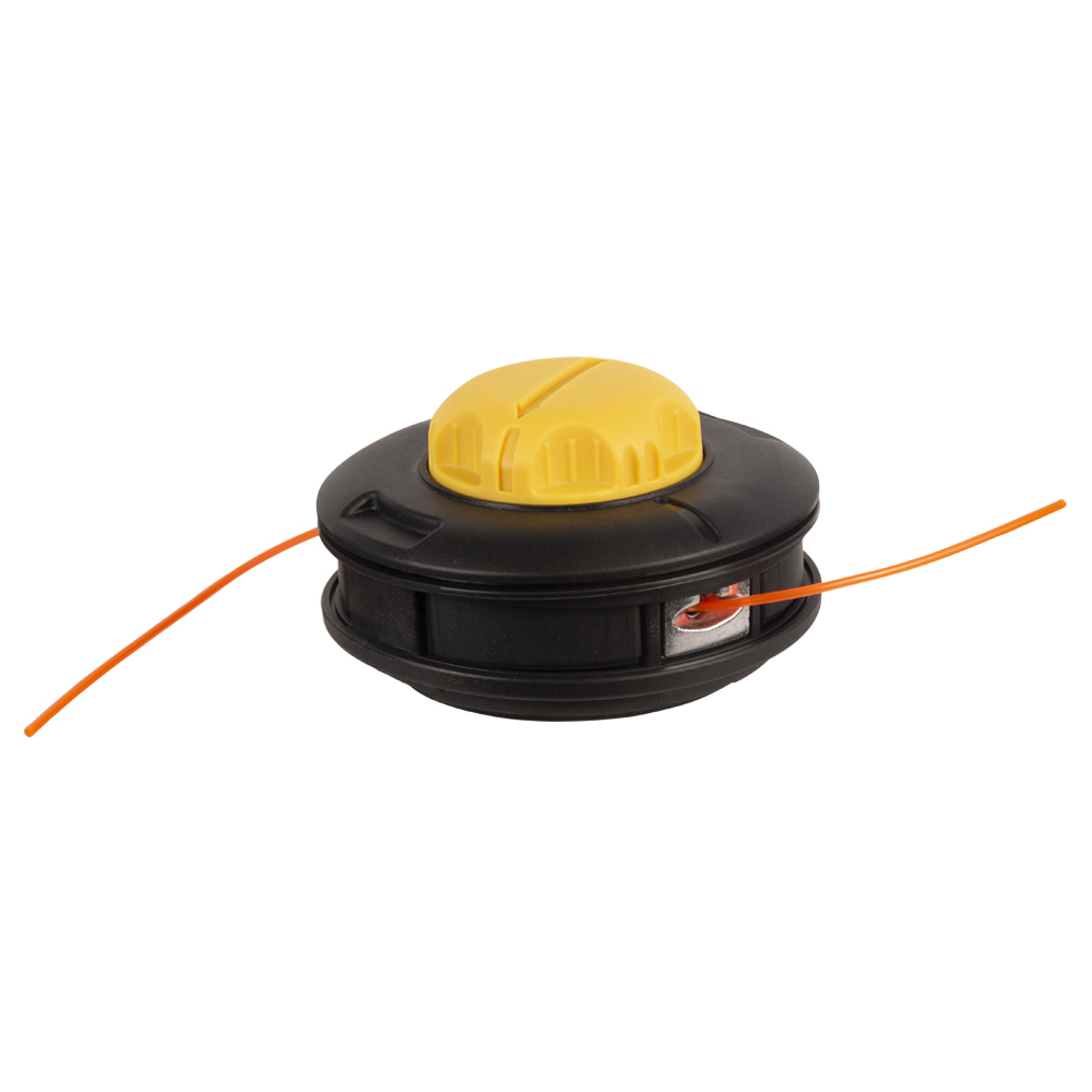 Котушка Sigma для тримера напівавтоматична M10 x 1.25 Ø1.6-3.0 мм пластикова кнопка - це практичний елемент для скошування трави, що підтримує використання товстого ріжучого матеріалу. Конструкція розроблена для швидкої подачі жилки без зупинки двигуна.
