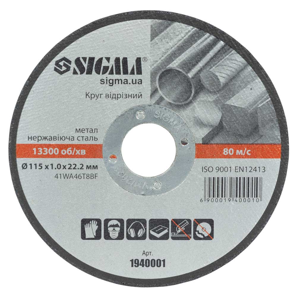 Круг відрізний по металу та нержавіючої сталі Sigma Ø115 x 1.0 x 22.2 мм, 13300об/хв