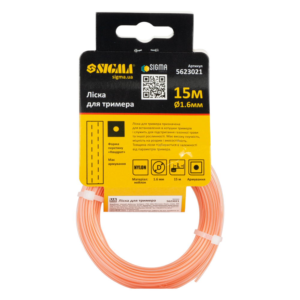 Ліска Sigma для тримера армований квадрат Ø1.6 мм 15 м