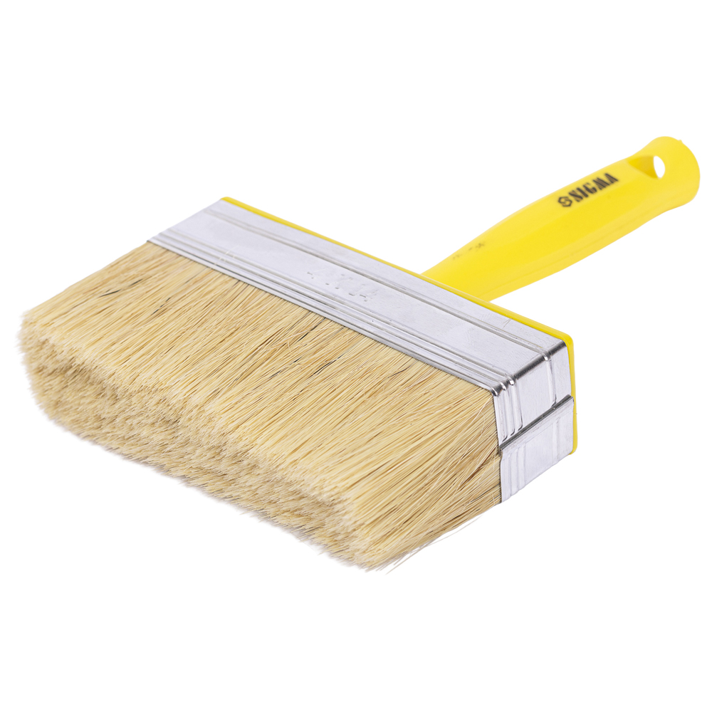 Макловиця Sigma натуральна 40 х 140 мм - призначена для максимально швидкого та якісного виконання об'ємних малярних завдань, від нанесення декоративних шарів до ґрунтування та очищення. Ключовою особливістю інструменту стала рясна натуральна щетина довжиною 44 мм, закріплена нікельованою обоймою, що дає величезну площу дотику та підвищує ефективність праці. Пластикове руків'я ергономічної форми оснащене кріпильним гаком для відра та отвором, роблячи цей універсальний для всіх ЛФМ помічник дуже зручним в експлуатації.
