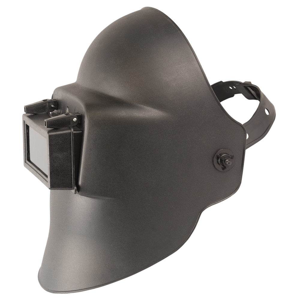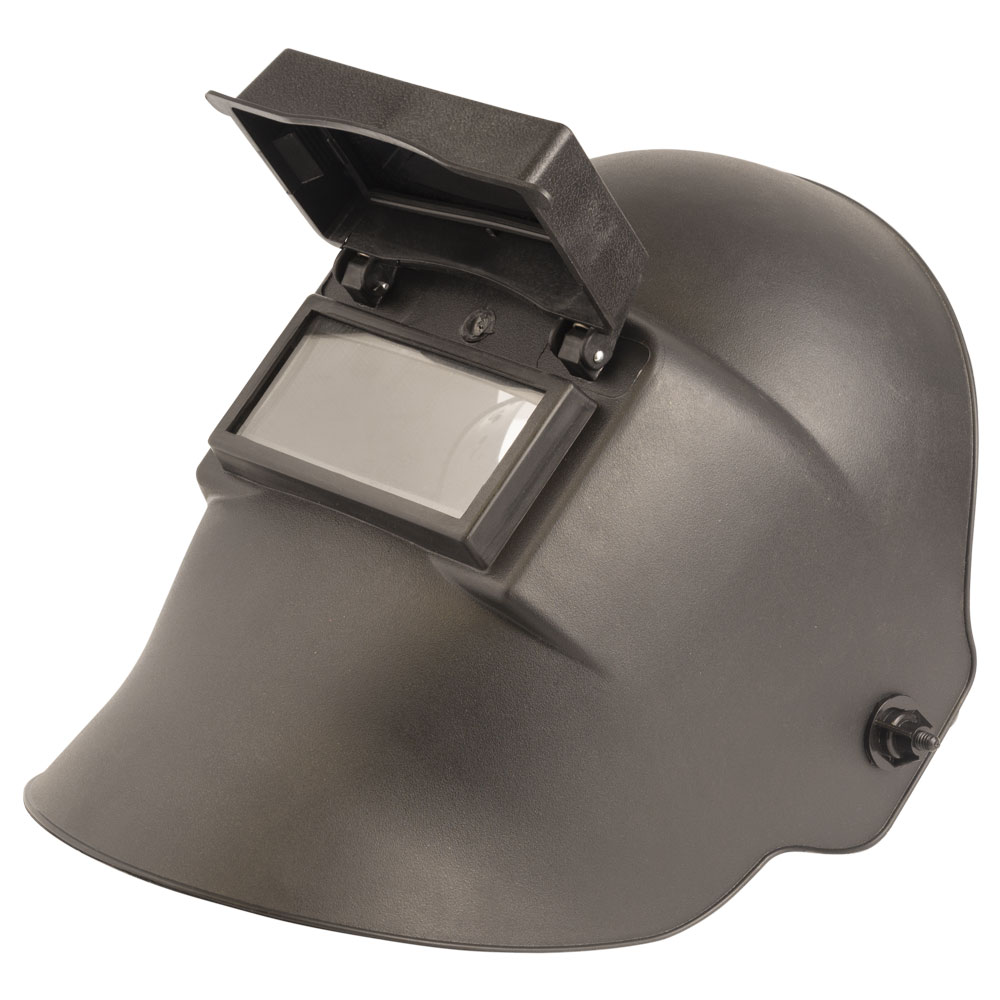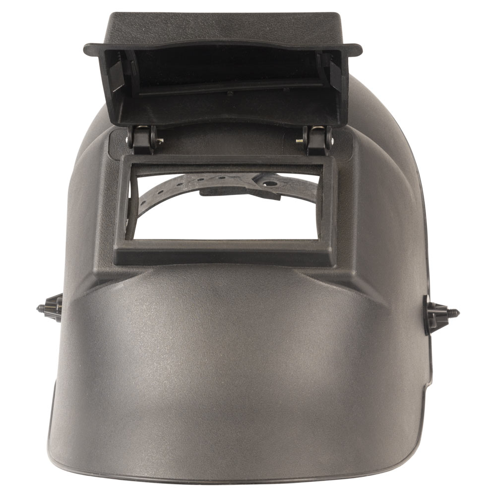- Відкидний механізм світлофільтра: наявність підйомної рамки забезпечує високий рівень зручності, дозволяючи піднімати затемнений елемент і залишати очі під захистом прозорого полікарбонатного екрана для зачистки шлаку або шліфування