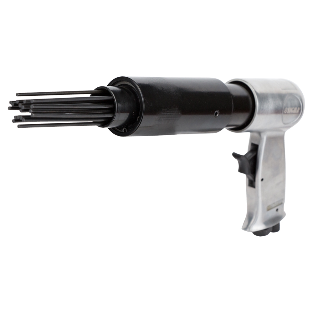 Молоток зачистний Sigma голчастий пневматичний — професійний інструмент, призначений для якісного очищення металевих поверхонь від корозії, окалини, шарів старої фарби та шлаку після зварювання. Цей пристрій ефективно працює у важкодоступних місцях та на рельєфних деталях завдяки пучку рухомих сталевих елементів.