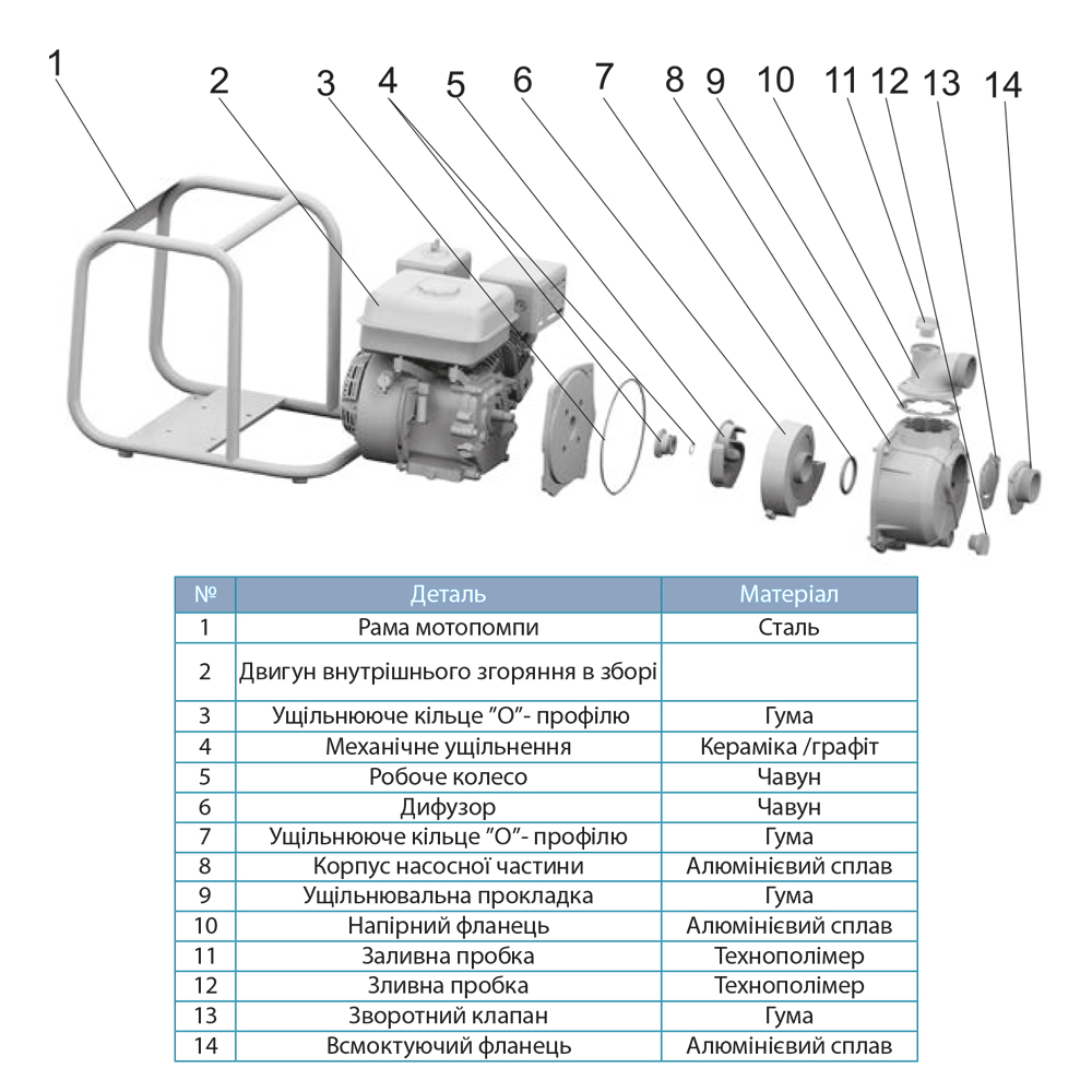 - Довговічний робочий механізм: крильчатка та равлик відлиті з високоміцного чавуну, стійкого до абразивного зносу та механічних пошкоджень.