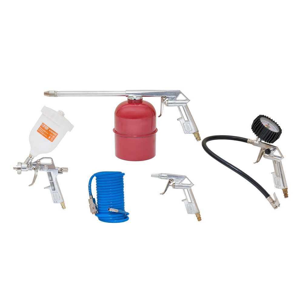 Набір лакофарбовий Grad 5 шт з в/б — це багатофункціональний комплект пневматичного інструменту, розроблений для ефективної роботи зі стисненим повітрям. Дана модель включає базовий перелік пристроїв, необхідних для фарбування, продування, миття та обслуговування транспортних засобів. Це обладнання стане ідеальним вибором для домашніх майстрів та професіоналів, оскільки дозволяє значно прискорити трудомісткі процеси та досягти бездоганної якості обробки поверхонь.