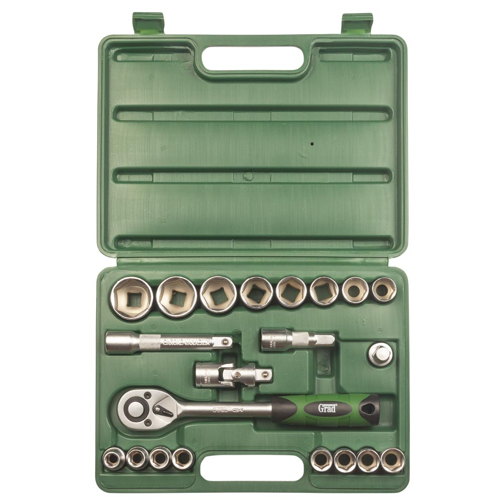 Набір насадок торцевих Grad 1/2" 21 шт - це практичний та універсальний інструментарій, розроблений для побутового використання. Даний комплект стане відмінним вибором для домашніх майстрів при вирішенні побутових проблем, а також для автолюбителів, які воліють мати в багажнику надійний арсенал для виконання нескладного автомобільного ремонту.