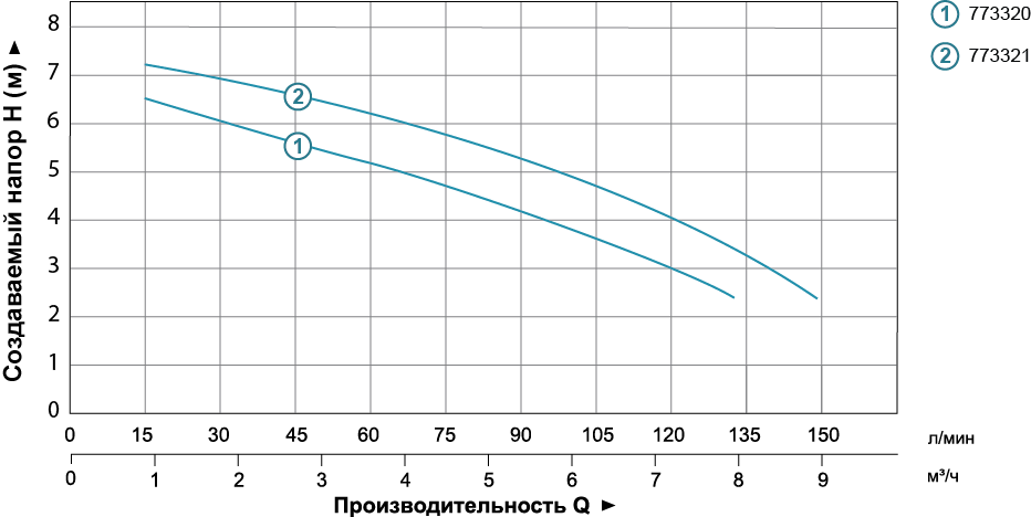 - Максимальний напір: 7 м