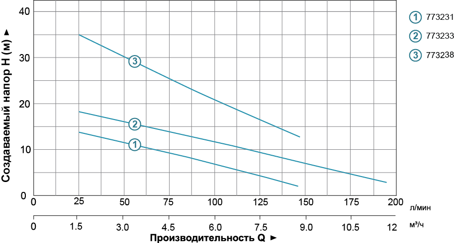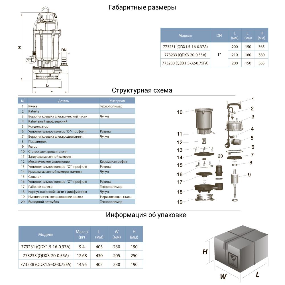 - Максимальний напір: 20 м