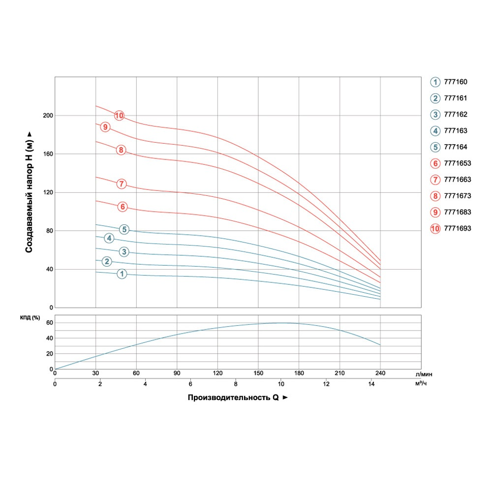 Максимальна продуктивність (Q max): 240 л/хв