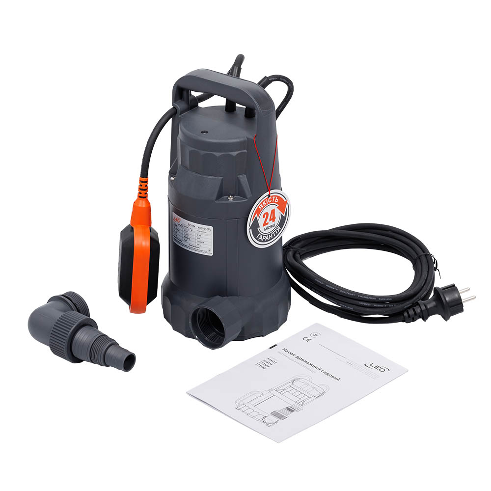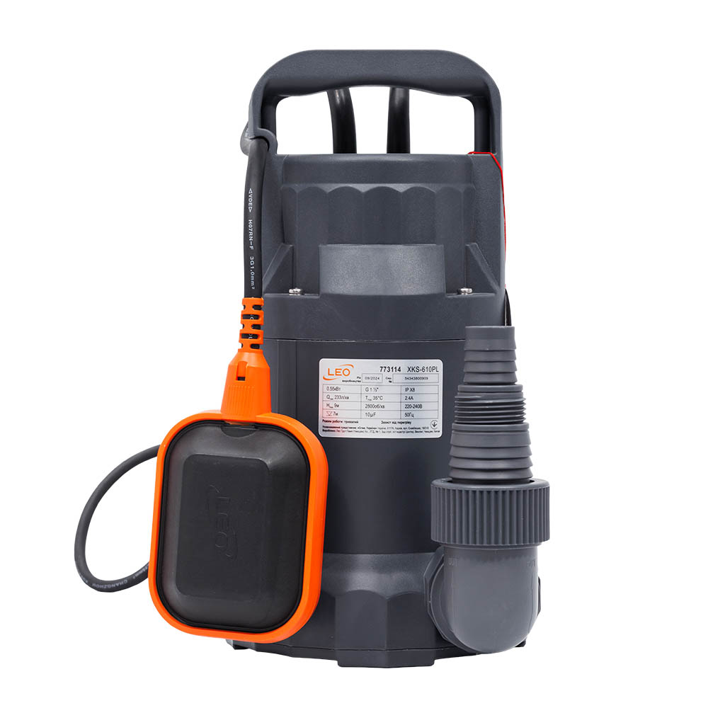 Насос Leo дренажний садовий 0.55кВт Hmax 9 м Qmax 233л/хв (част. до 5 мм)