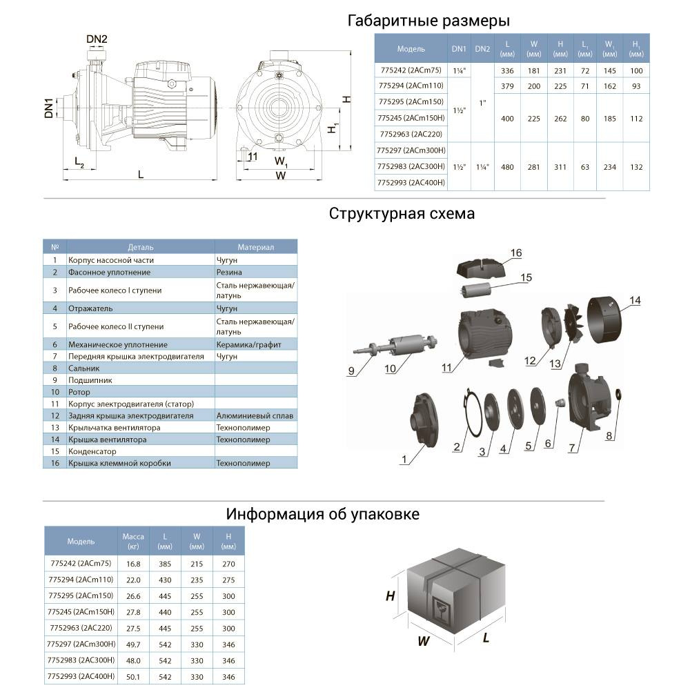- Багатоступінчаста система: наявність кількох робочих коліс дозволяє створювати потужний напір до 82 м без втрати загального об'єму рідини, що перекачується.