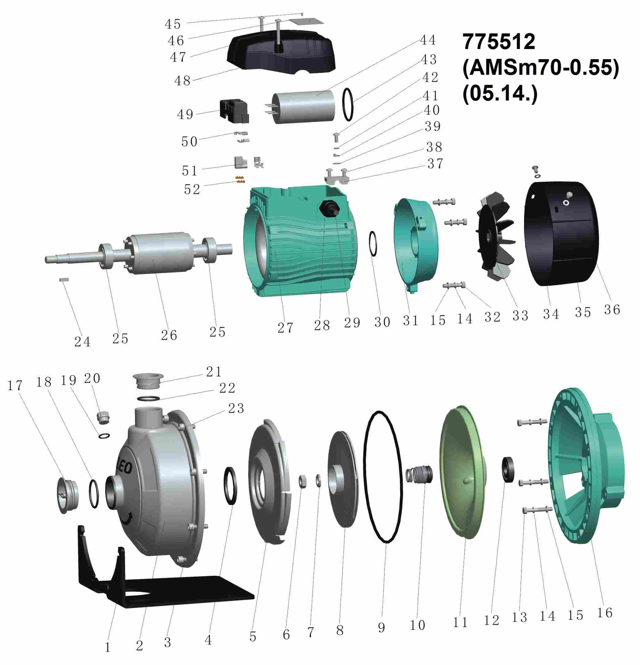 Насос Leo відцентровий 0.55кВт Hmax 29.5м Qmax 80л/хв (нерж) 3.0 AMSm70/0.55