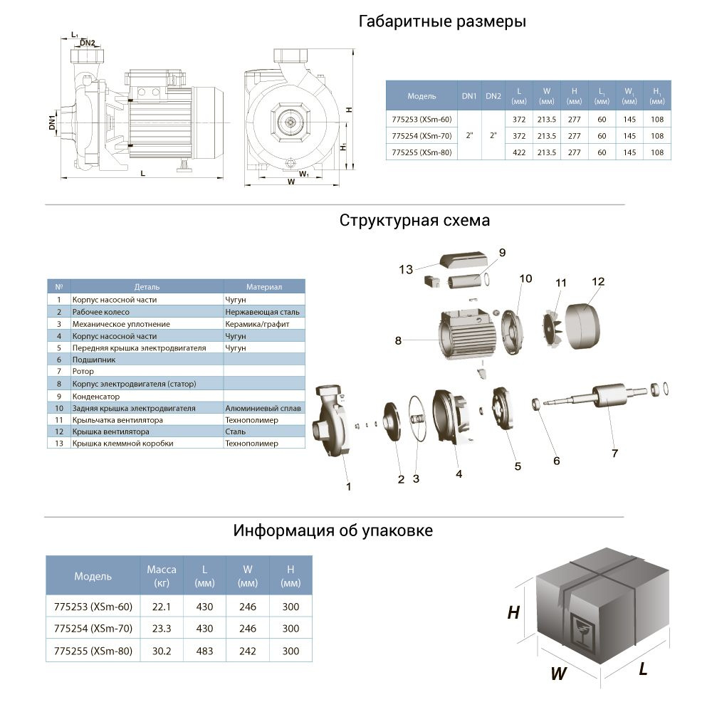 - Тип мотора: надійний асинхронний двигун закритого типу, оснащений системою примусової зовнішньої вентиляції.