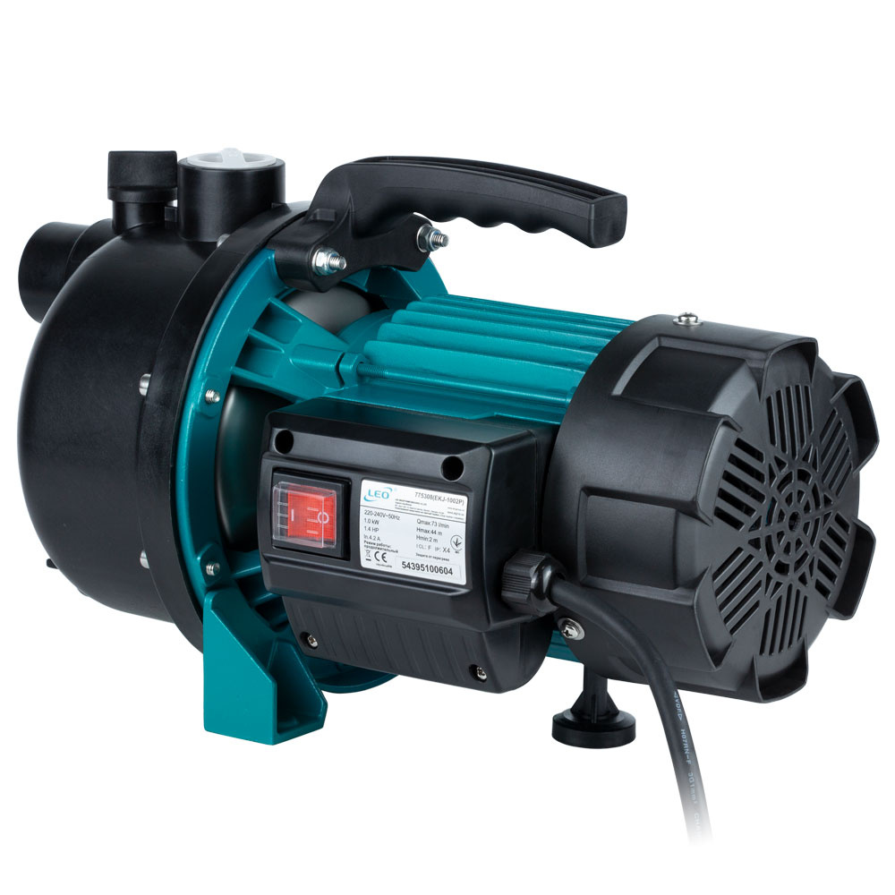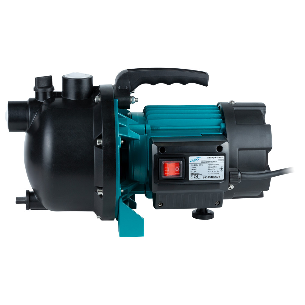 Насос Leo відцентровий самовсмоктуючий 1.0кВт Hmax 44м Qmax 73л/хв пластик EKJ-1002P