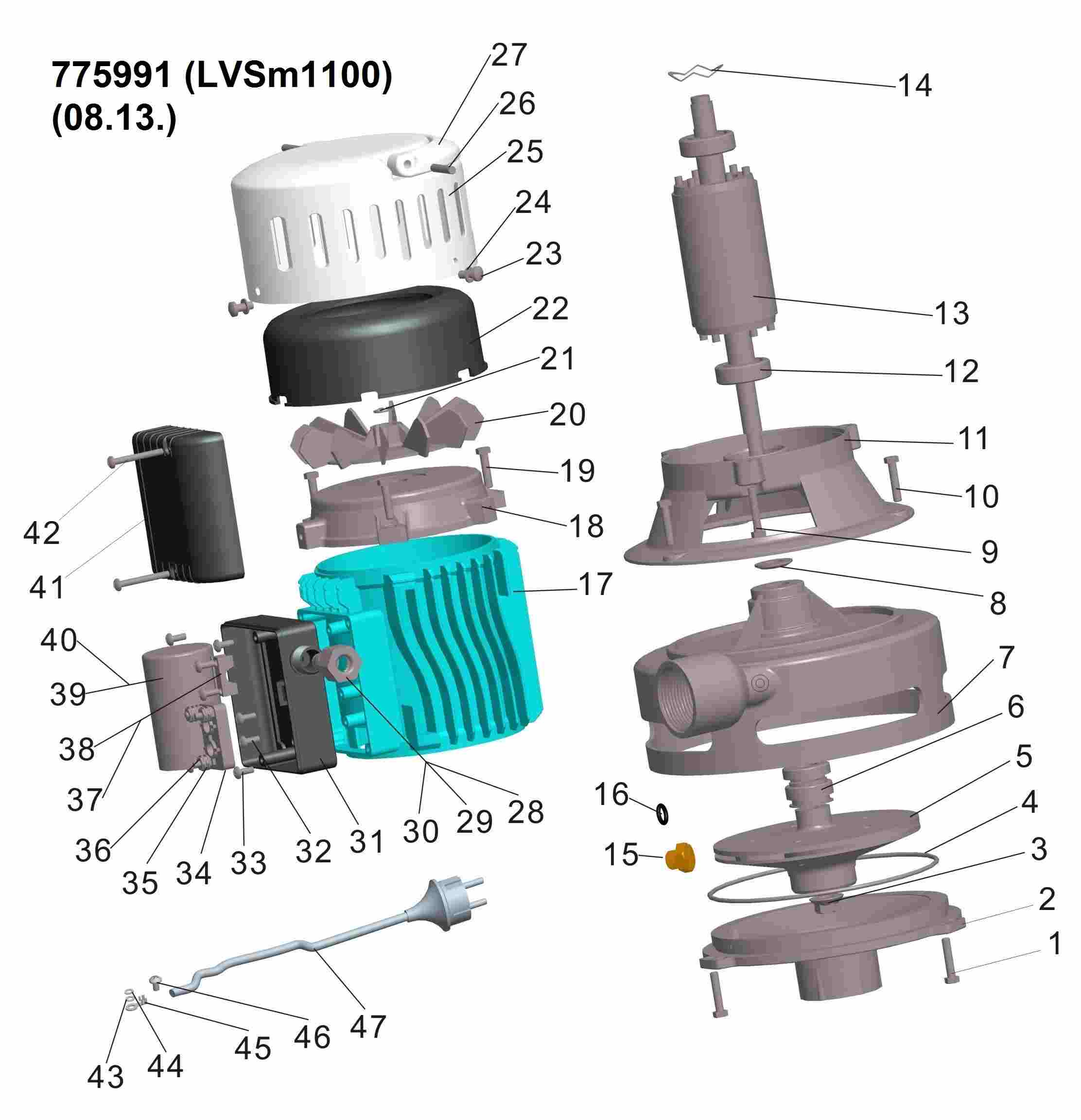 - Робоче колесо: ідеально збалансована крильчатка стійка до механічного зносу та тривалого впливу водного середовища.