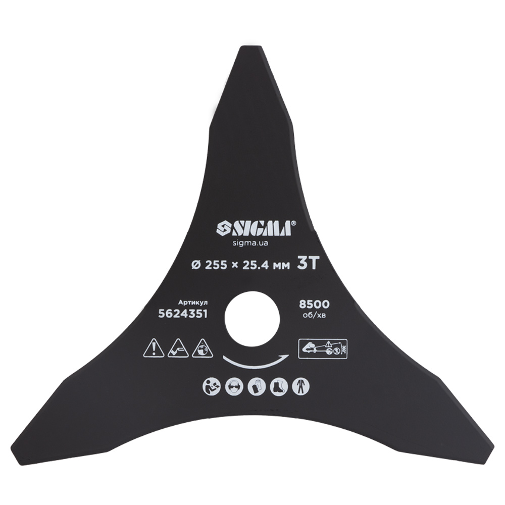Ніж Sigma для тримера Ø255 x 25.4 мм 3Т загострений - це професійне різальне полотно, виготовлене з високолегованої сталі з підвищеним показником міцності. Спеціальна гостроконечна форма лопатей дозволяє ефективно вражати не лише щільні трав'яні масиви, а й жорстку поросль. Виріб демонструє чудову опірність до механічного зносу, що гарантує стабільну роботу садової техніки навіть при інтенсивних навантаженнях.