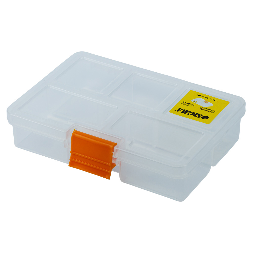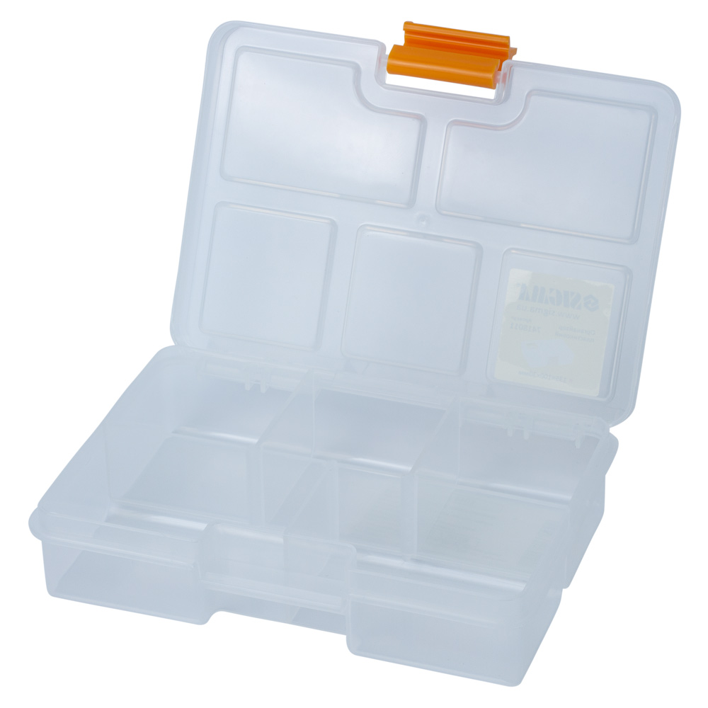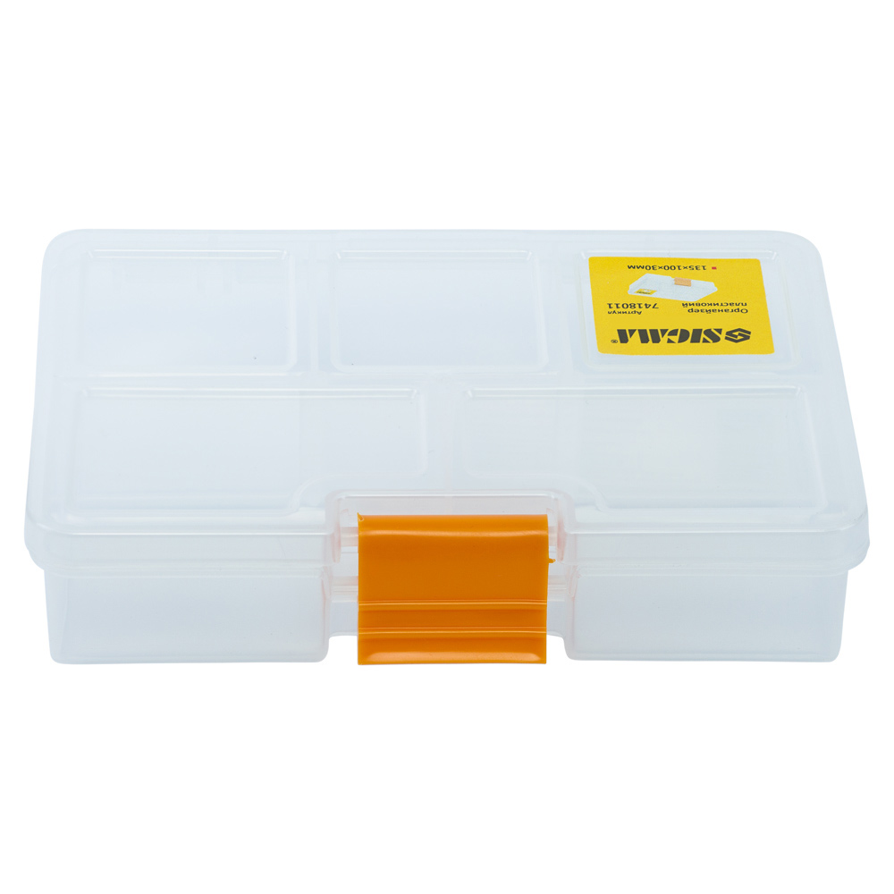 Органайзер Sigma пластиковий (прозорий) 135 x 100 x 30 мм призначений для зберігання, транспортування, перенесення та зручного доступу до дрібногабаритного інструменту. Виріб допомагає системно організувати розміщення дрібних деталей: кріплення, шайб, гайок та інших дрібниць, а наявність декількох секцій значно спрощує пошук необхідних елементів.
