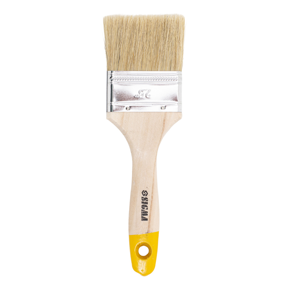 Пензель Sigma флейцевий профі 2.5" - це малярний інструмент високої якості, призначений для професійного використання. Ключовою особливістю цієї моделі є натуральна, двічі виварена та розпушена щетина, яка забезпечує високу продуктивність та безпрецедентну якість фарбування. Зручне дерев'яне руків'я, вкрите лаком, добре лежить у руці, що запобігає виникненню передчасної втоми при виконанні великих обсягів робіт, а сумісність з усіма типами ЛФМ робить цей інструмент незамінним помічником для професіоналів.