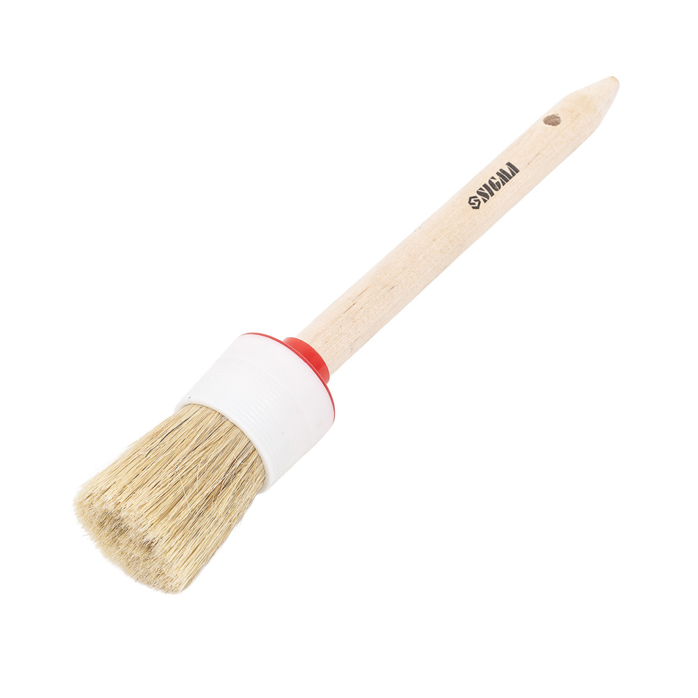 Пензель Sigma круглий №10 - це ефективний малярний аксесуар з шириною 40 мм, створений для взаємодії з усіма типами лакофарбових матеріалів. Ключовою особливістю цієї позиції є густа натуральна щетина круглої форми, що робить її функціонально схожою на плоский аналог, але більш пристосованою для промальовування трафаретів та рівномірного фарбування заокруглених поверхонь. Дерев'яне руків'я додає комфорту при тривалій роботі.