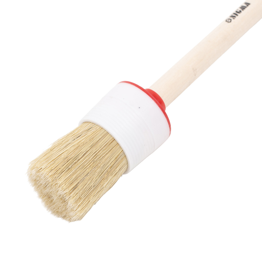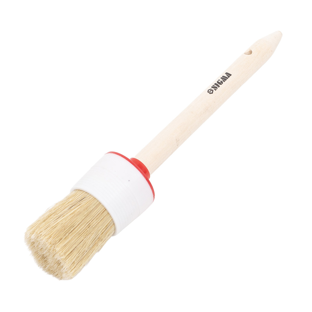 Пензель Sigma круглий №12 - являє собою якісний інструмент для ремонтних робіт з шириною 45 мм, виготовлений з натуральної щетини та доповнений дерев'яним руків'ям. Ключовою особливістю даного агрегату виступає його кругла форма, яка, маючи схожий функціонал з плоскими версіями, чудово підходить для обробки заокруглених поверхонь та детального промальовування трафаретів будь-якими типами ЛФМ.