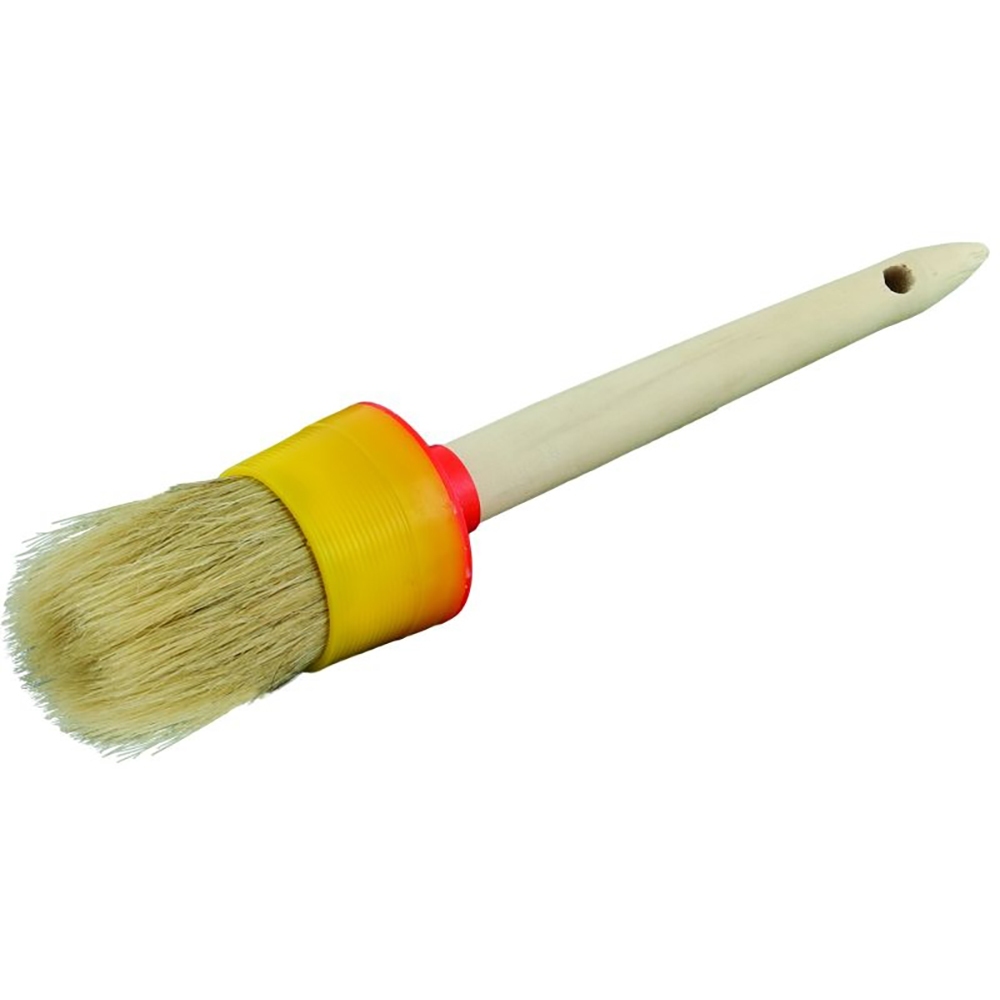 Пензель Sigma круглий №16 - є найширшим пристосуванням у цій лінійці з показником 55 мм, оснащеним класичним дерев'яним руків'ям та натуральною щетиною. Ключовою особливістю моделі служить її кругла будова, яка за функціоналом повторює плоскі зразки, але значно краще проявляє себе при промальовуванні трафаретів та фарбуванні масштабних заокруглених поверхонь різними типами ЛФМ.