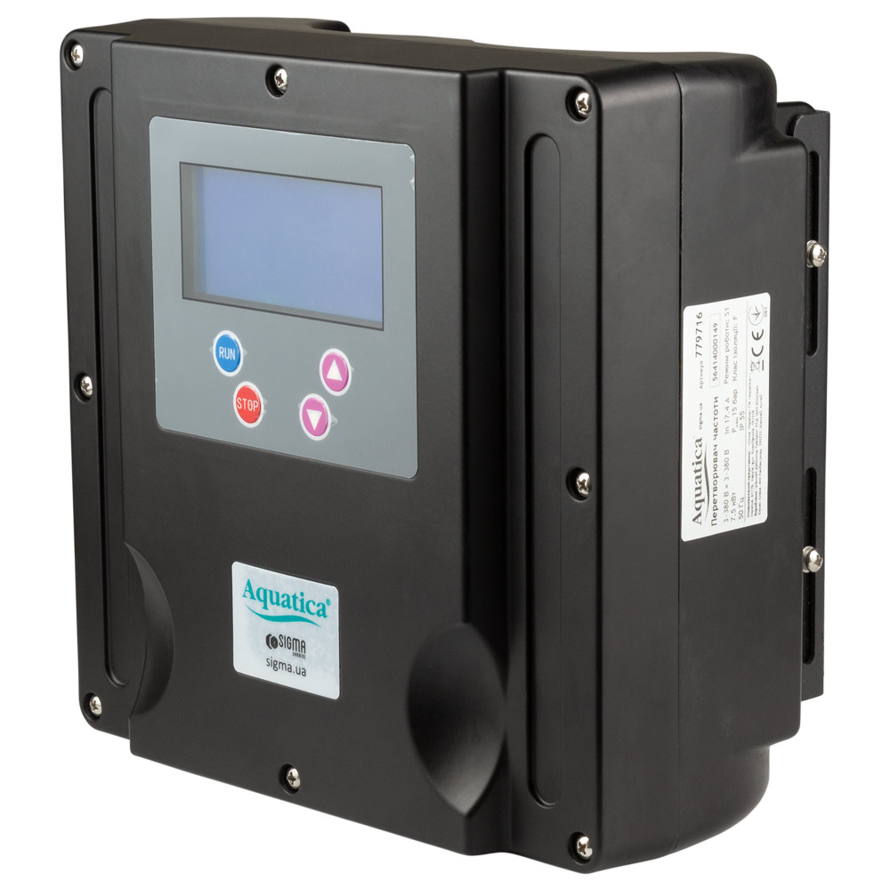 Перетворювач частоти Aquatica 3~380В x 3~380В до 7.5кВт з датчиком тиску (AVF-7.5ТL) — професійний пристрій для автоматичного керування насосним обладнанням та підтримання стабільних показників у водопровідній мережі.