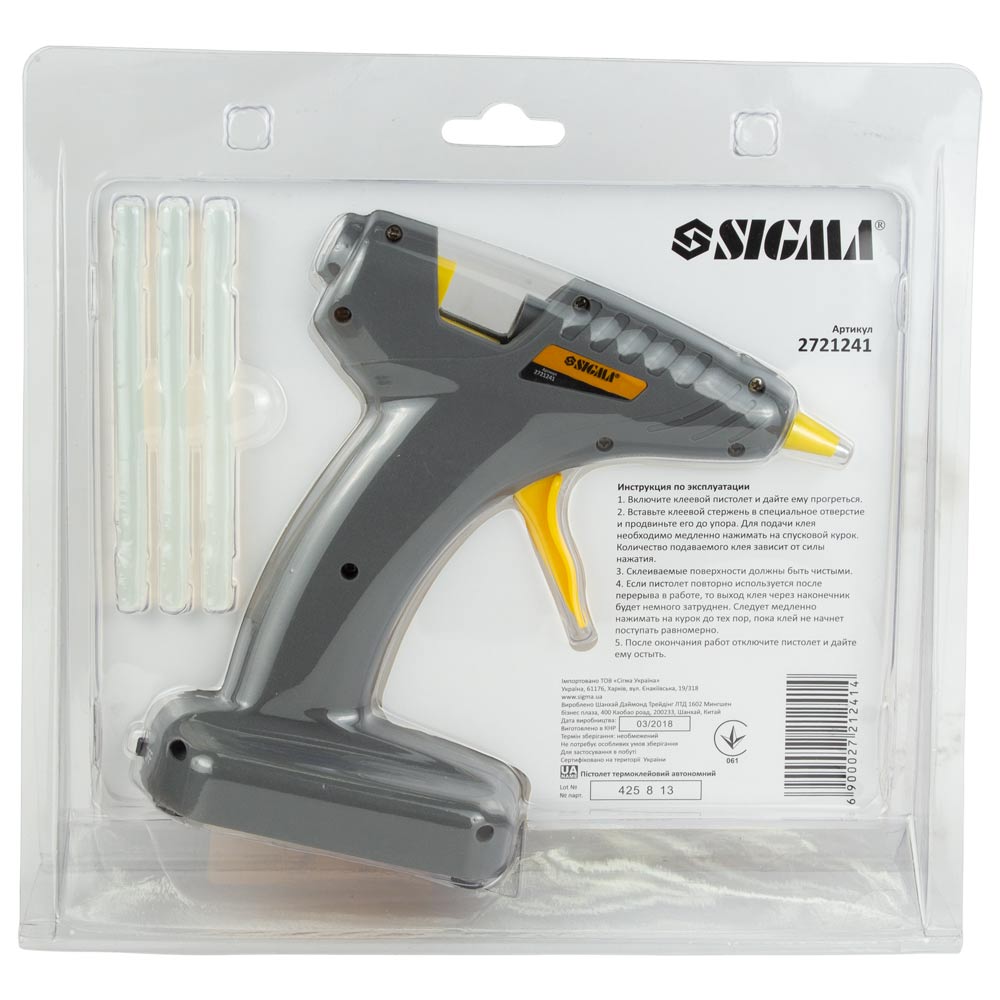 Пістолет термоклейовий Sigma автономний Ø8 мм 8 Вт/6В