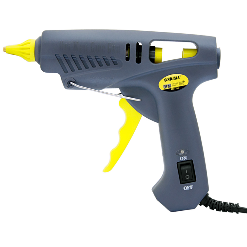 Пістолет термоклейовий Sigma з вимикачем Ø11.2 мм 250 Вт — потужний електроінструмент, призначений для оперативного та надійного склеювання різноманітних матеріалів за допомогою розплавленої клейової маси. Дана модель відрізняється високою продуктивністю та ефективністю, що робить її чудовим вибором для проведення ремонтних робіт, декорування, моделювання або використання у побутових цілях.