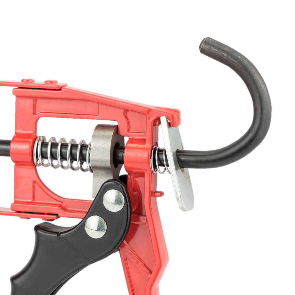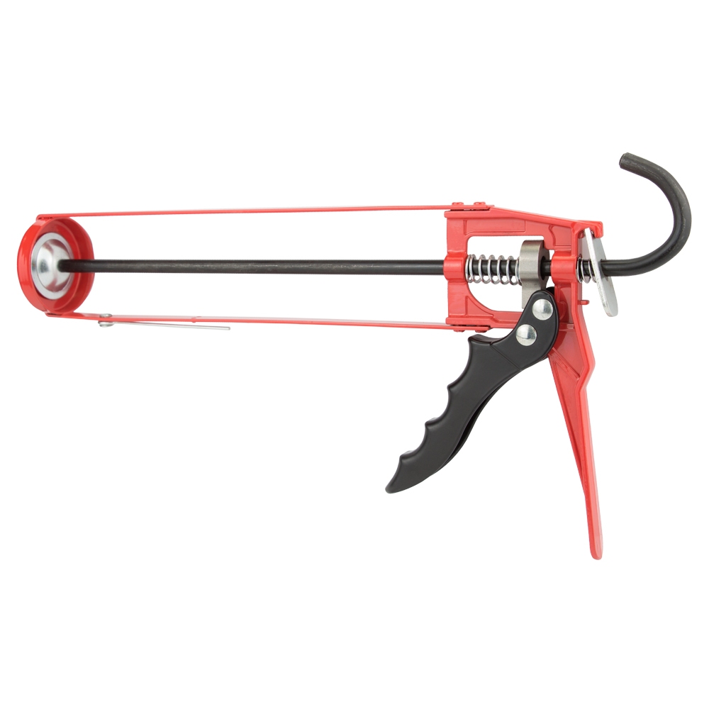 Пістолет Ultra для герметиків посилений 225 мм — це потужний інструмент, призначений для ефективного видавлювання ізоляційних сумішей, фіксації та заповнення пустот під час монтажу ванн, вікон, дверей або плитки. Особливістю даного пристрою є посилена конструкція корпусу з товщиною сталі 2.2 мм та додатковими ребрами жорсткості, що запобігає деформації механізму. Завдяки посиленій "собачці", сила штовхання штока досягає 1500N, а вбудована голка дозволяє легко прочищати носик колби, забезпечуючи безперервний робочий процес.