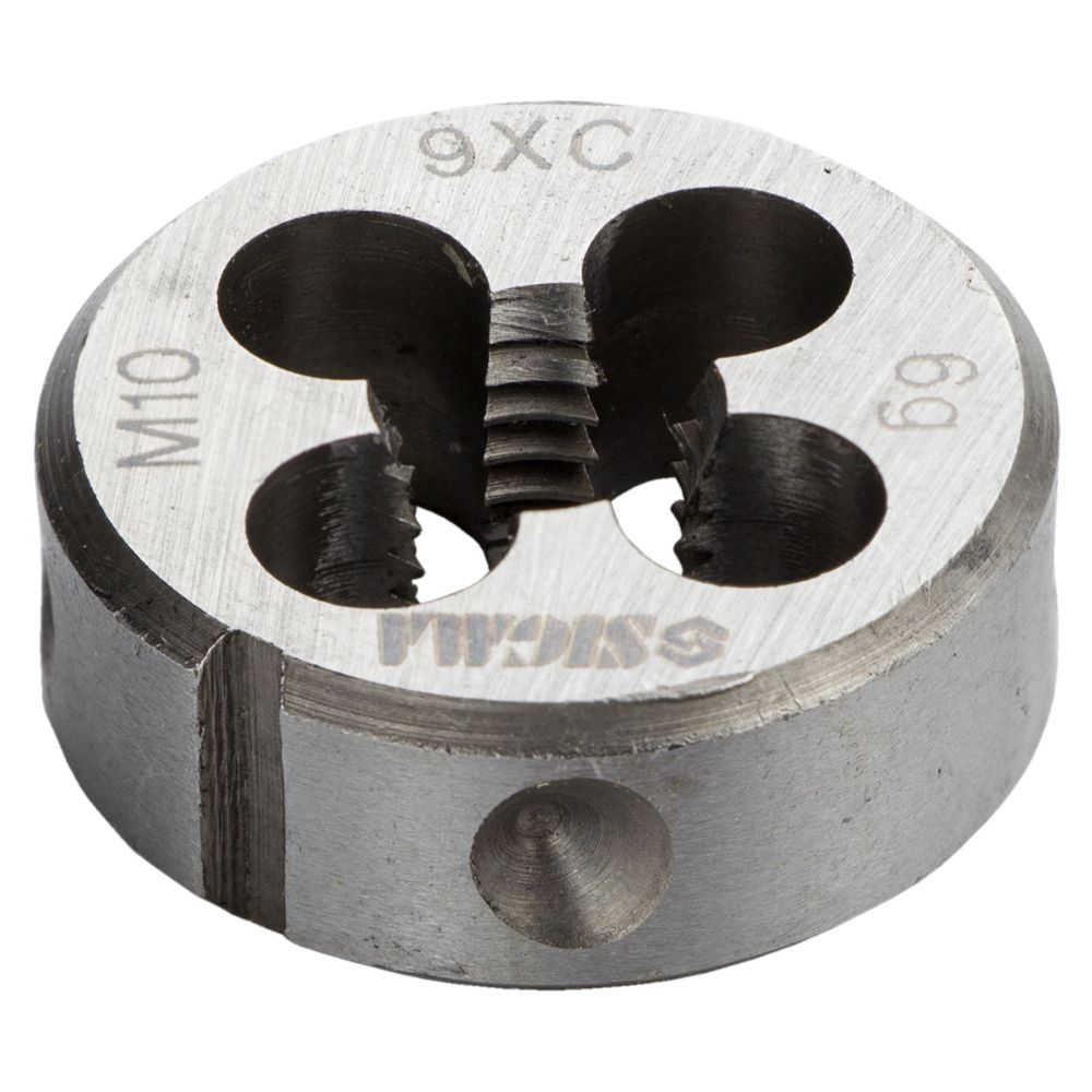 Плашка Sigma М10 x 1.5 мм - це надійна оснастка, призначена для нарізування або калібрування зовнішньої різьби. Даний виріб фіксується у спеціальних тримачах за допомогою стопорних гвинтів, для чого на зовнішньому циліндрі передбачені конічні заглиблення та кутовий паз. Висока жорсткість інструменту дозволяє отримати профіль виняткової якості на деталях із різних матеріалів. Для забезпечення плавності ходу та захисту робочих поверхонь від зносу перед початком робіт рекомендується використовувати консистентне мастило.