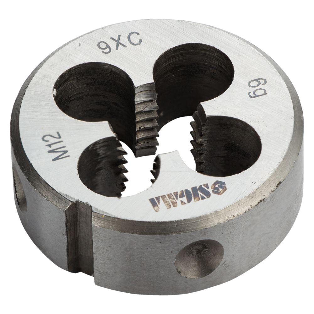 Плашка Sigma М12 x 1.75 мм - це надійна оснастка, призначена для нарізування або калібрування зовнішньої різьби. Даний виріб фіксується у спеціальних тримачах за допомогою стопорних гвинтів, для чого на зовнішньому циліндрі передбачені конічні заглиблення та кутовий паз. Висока жорсткість інструменту дозволяє отримати профіль виняткової якості на деталях із різних матеріалів. Для забезпечення плавності ходу та захисту робочих поверхонь від зносу перед початком робіт рекомендується використовувати консистентне мастило.