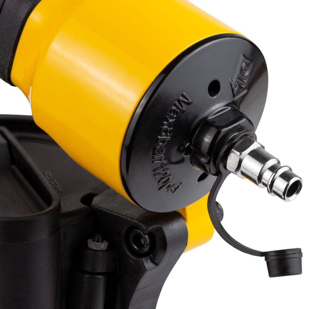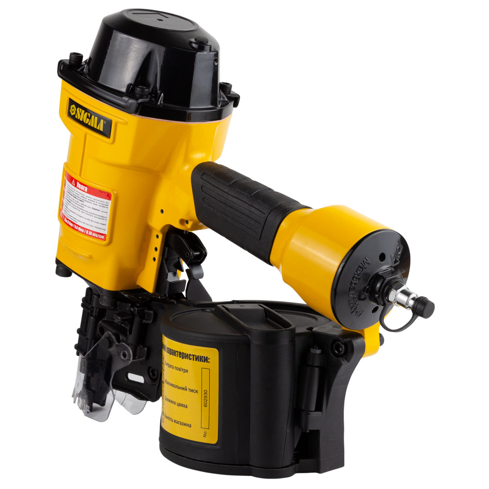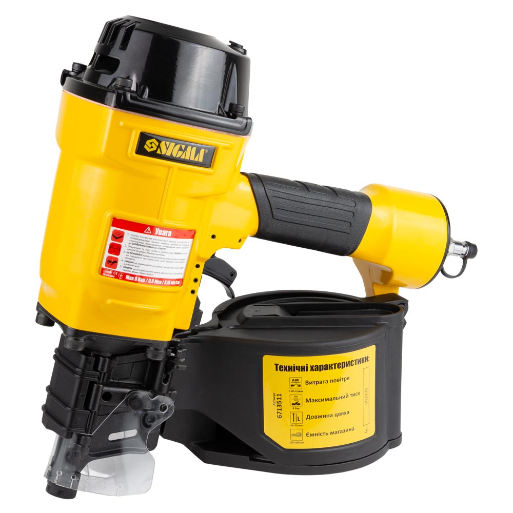 Пневмопістолет Sigma цвяхозабивний котушковий 1.56л/удар 8бар цвяхи 45-70 мм — професійне обладнання, призначене для виконання масштабних будівельних та монтажних робіт, що потребують високої швидкості та надійності кріплення. Дана модель є незамінним помічником при збиранні дерев'яної тари, піддонів, зведенні каркасних будинків та монтажі дерев'яних перекриттів. Завдяки використанню енергії стисненого повітря, цей інструмент дозволяє суттєво знизити фізичне навантаження на оператора та скоротити час виконання операцій у порівнянні з ручною працею.