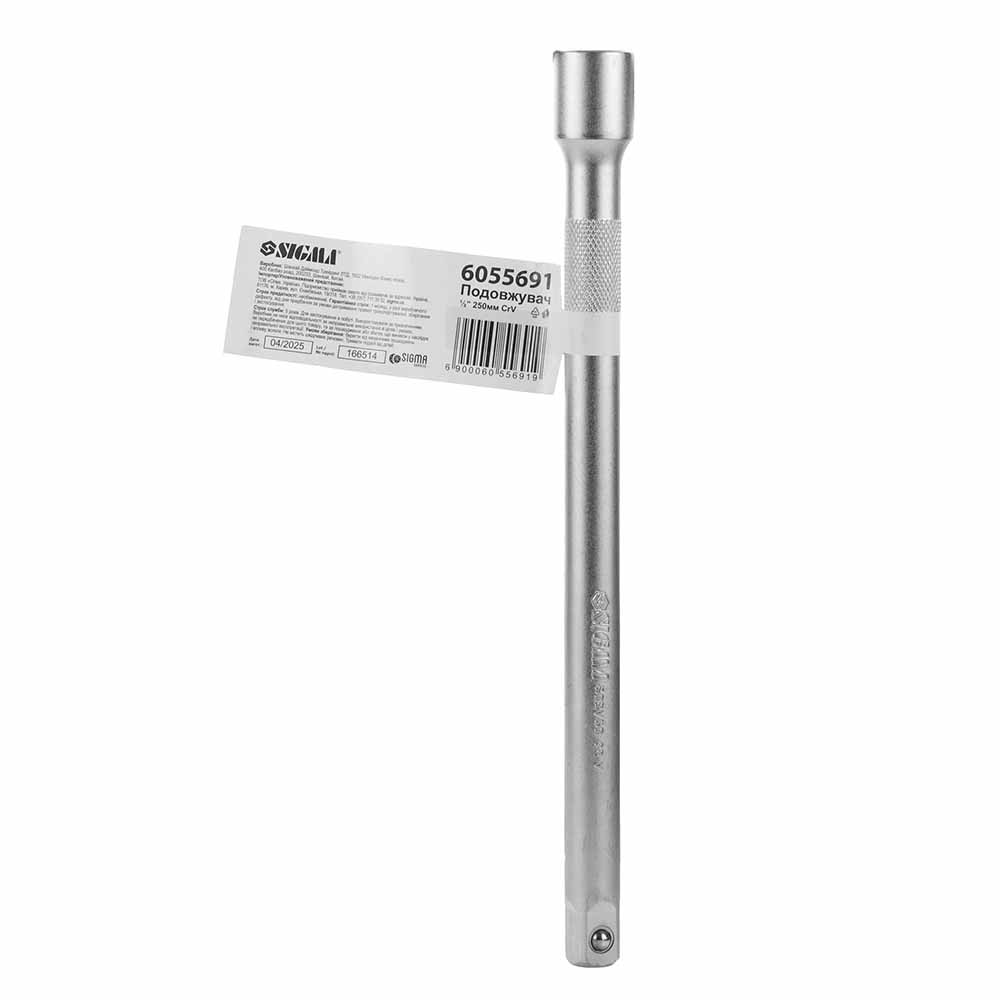 Подовжувач Sigma CrV 1/2" 250 мм - це професійне допоміжне оснащення, розроблене для збільшення робочої дистанції між торцевою головкою та ручним інструментом. Використання виробу дозволяє ефективно працювати з кріпильними елементами, що знаходяться у глибоких технологічних заглибленнях або заблоковані іншими деталями конструкції. Модель виготовлена з високоякісної хром-ванадієвої сталі (CrV), яка забезпечує відмінну міцність та стійкість до деформації при передачі крутного моменту.