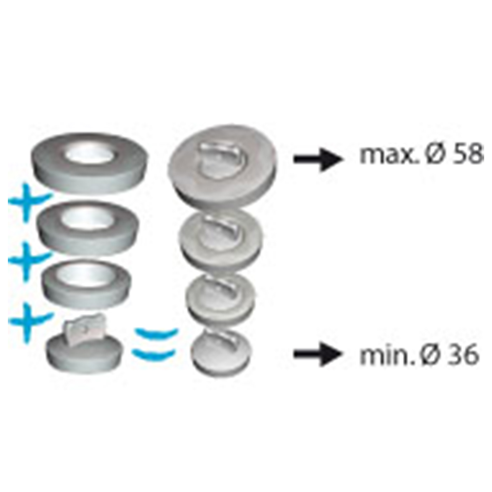 Універсальність: набірна конструкція з чотирьох елементів дозволяє використовувати пробку для зливних отворів діаметром від 36 до 58 мм.